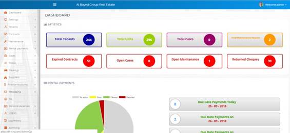 The system provides the employees who responsible for the real estate management the ease of control and use. Which includes all stages of real estate management, starting from the unit rent, registering tenant data and adding checks.